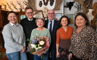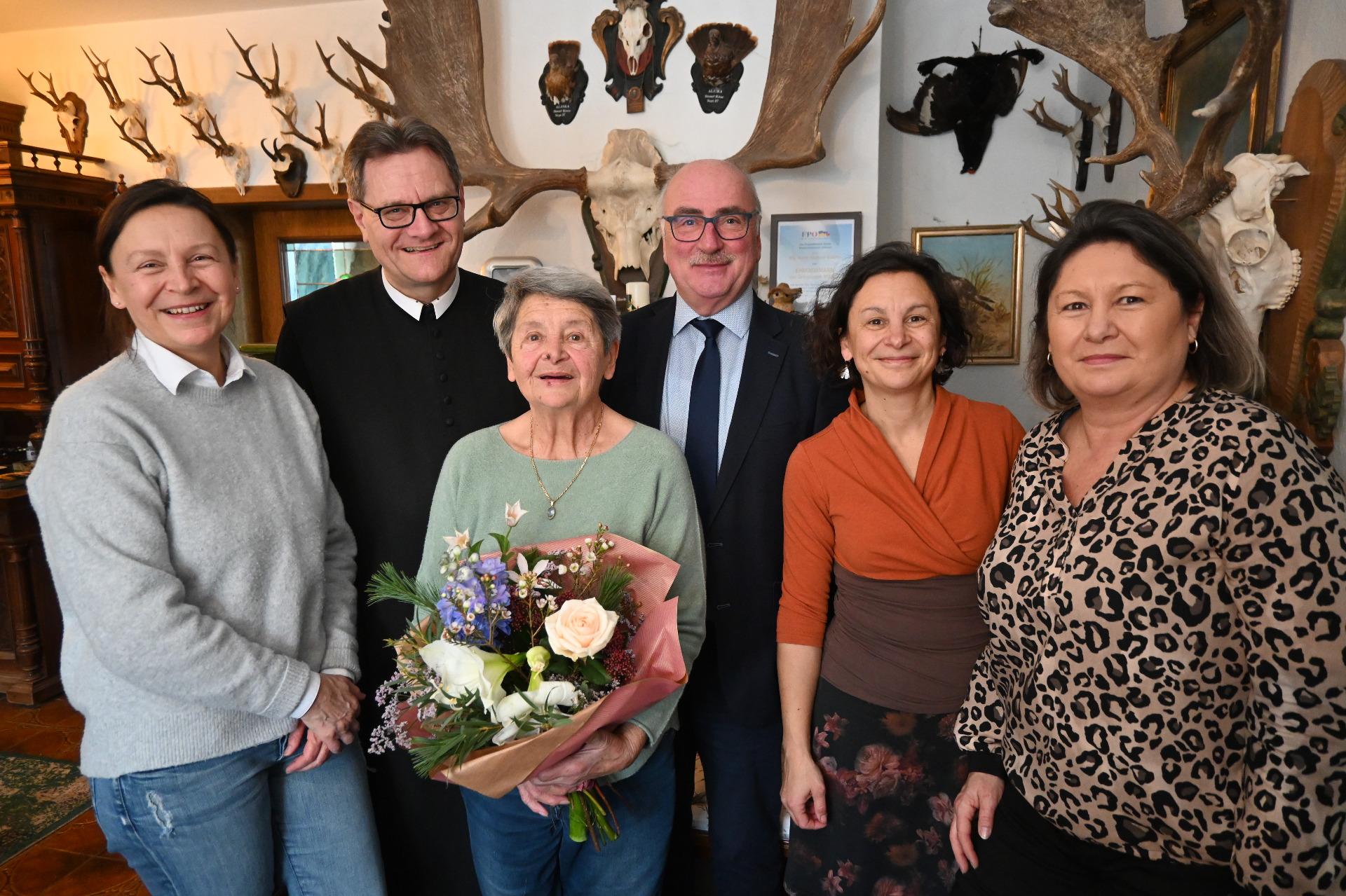Jubilarin Edith Gabriel mit Töchtern, Dechant P. Jacobus Tisch, Bgm. Gerhard Lueger