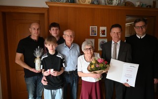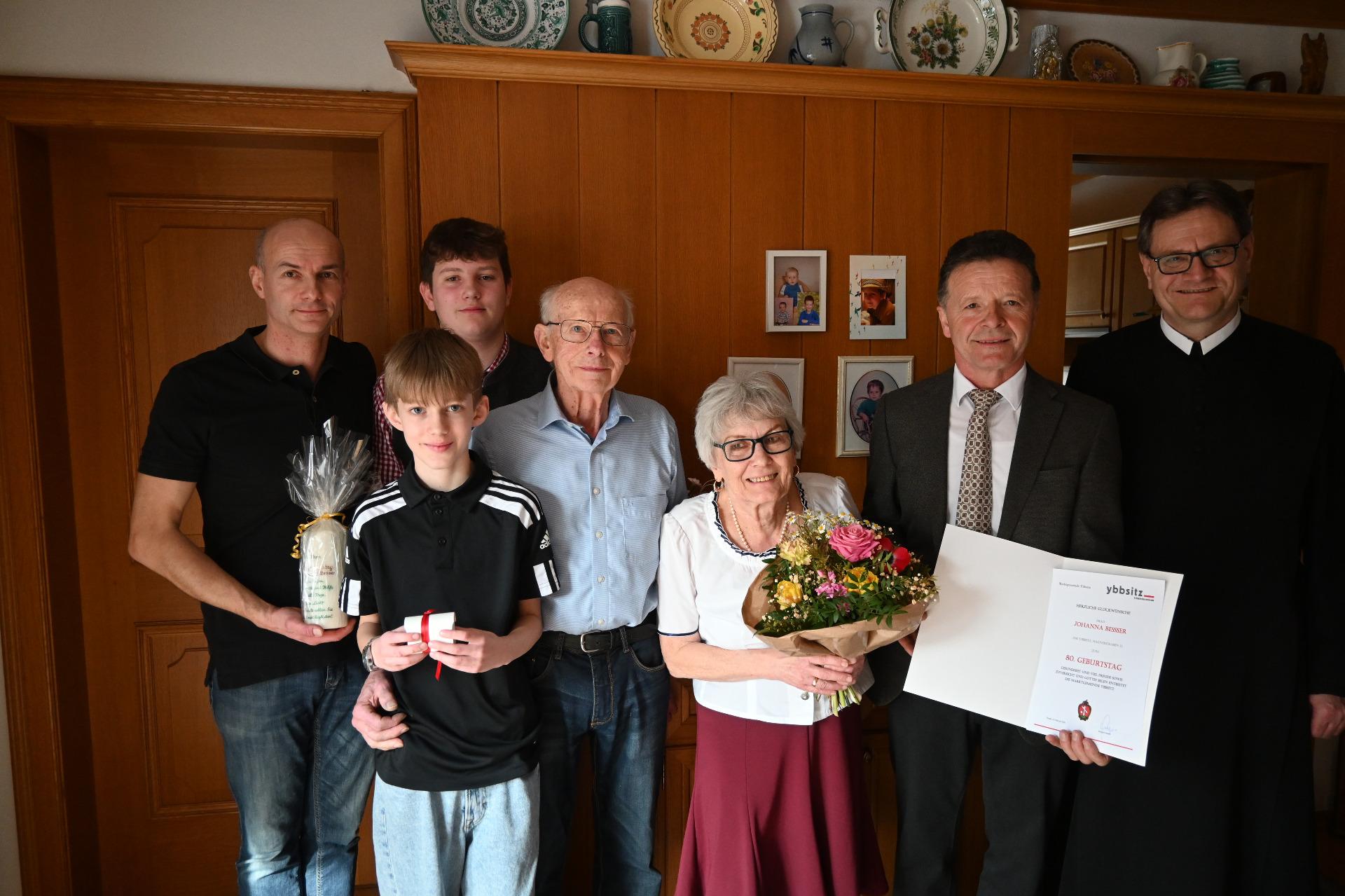 Jubilarin Johanna und Ehegatte Karl Besser mit Familie, Vizebgm. Georg Stockner, Dechant P. Jacobus Tisch