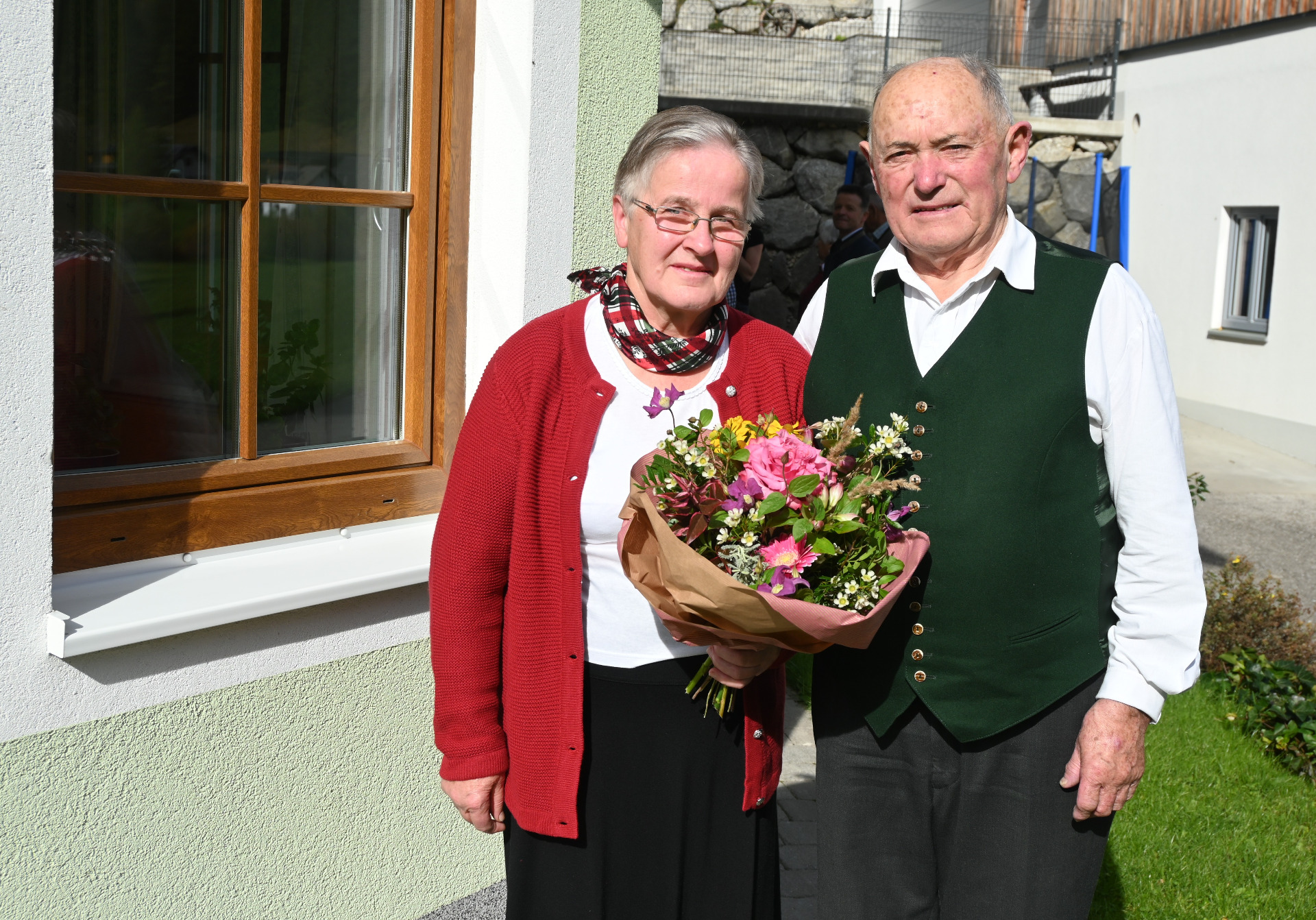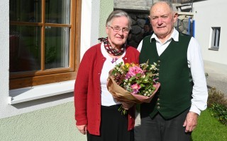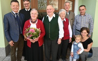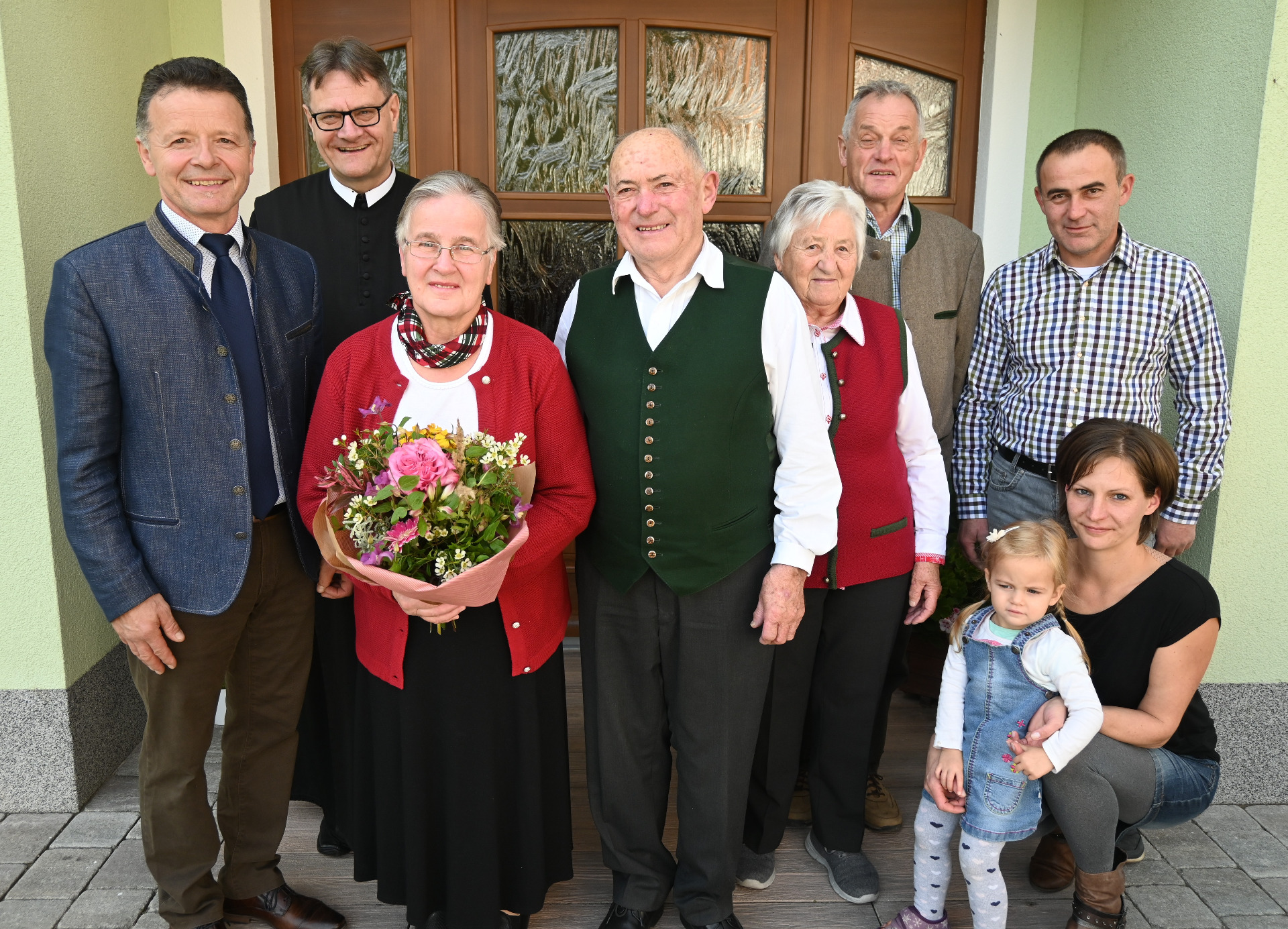 Jubelpaar Johanna und Leopold Tazreiter mit Familie, Vizebgm. Georg Stockner, Dechant P. Jacobus Tisch, Elisabeth Spreitzer und Michael Biber (NÖ´s Senioren).