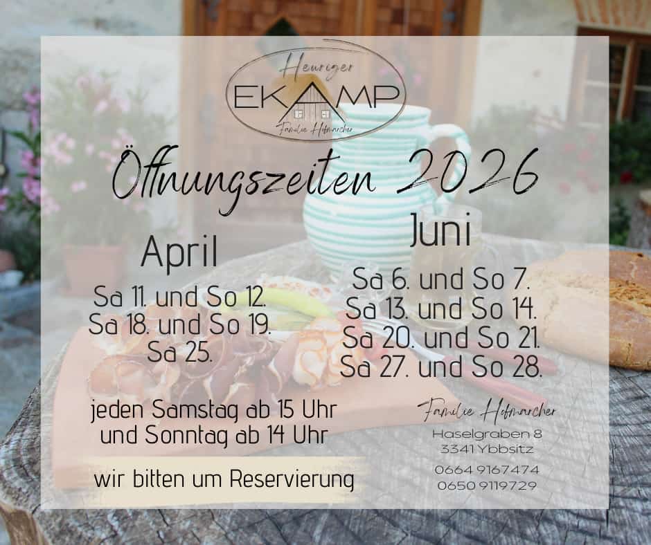 11.+12.4. I 18.+19.4. I 25.4. I 6.+7.6. I 13.+14.6. I 20.+21.6. I 27.+28.6. I Samstag ab 15 Uhr I Sonntag ab 14 Uhr I Reservierung: Tel. 0664/916 7474 u. 0650/911 9729
