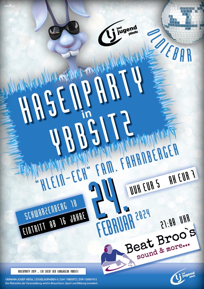 Die Landjugend Ybbsitz lädt zur Hasenparty 2024 ins Klein-Eck ein!
