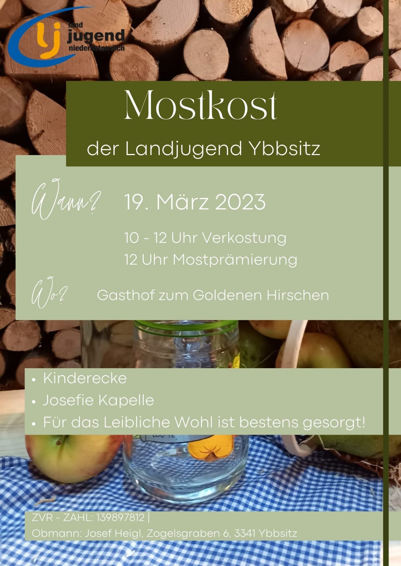 Die Landjugend Ybbsitz lädt zur Mostkost am Sonntag, 19. März 2023 herzlich ein: