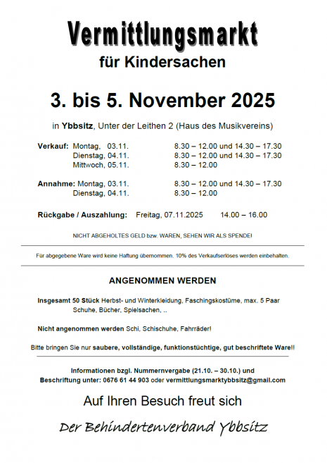 Information bzgl. Nummernvergabe (21.10. - 30.10.) und Beschriftung unter: 0676 61 44 903 oder