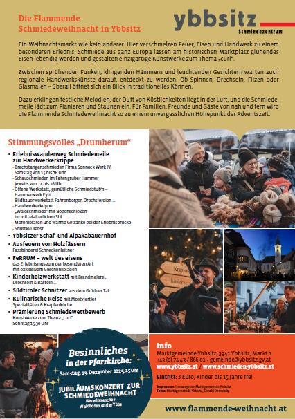 Wir laden herzlich zu den verschiedensten weihnachtlichen Veranstaltungen in Ybbsitz herzlich ein:
