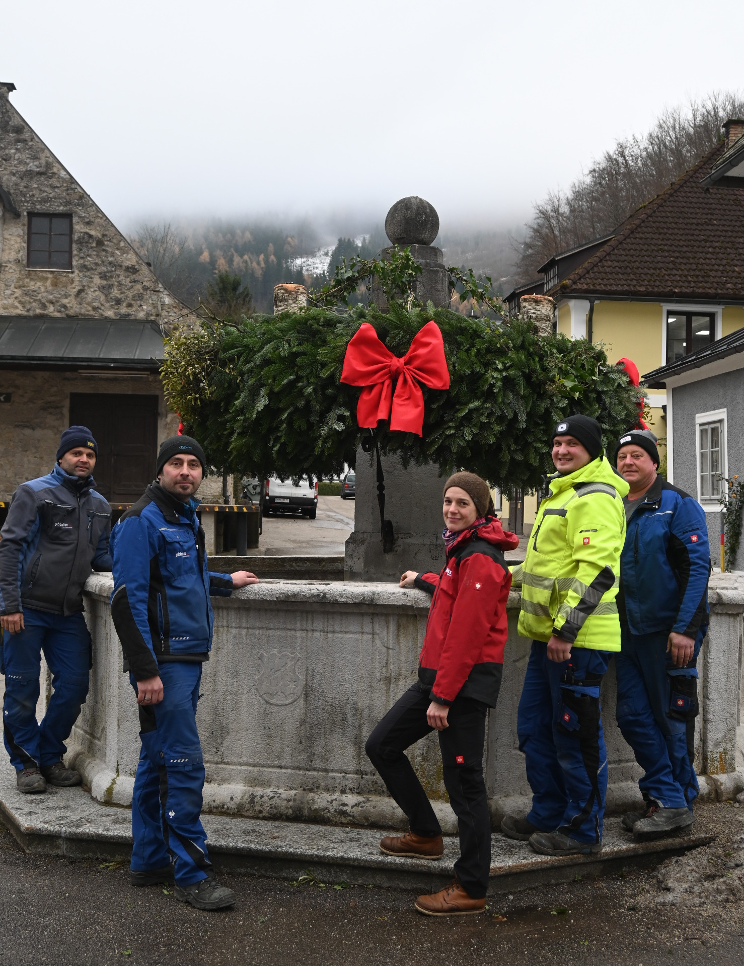 Mit viel Engagement wurde der Kranz unter Federführung unserer Bauhofmitarbeiterin Stephanie Daurer, gemeinsam mit freiwilligen Helferinnen und Helfern sowie dem Bauhofteam, gestaltet.