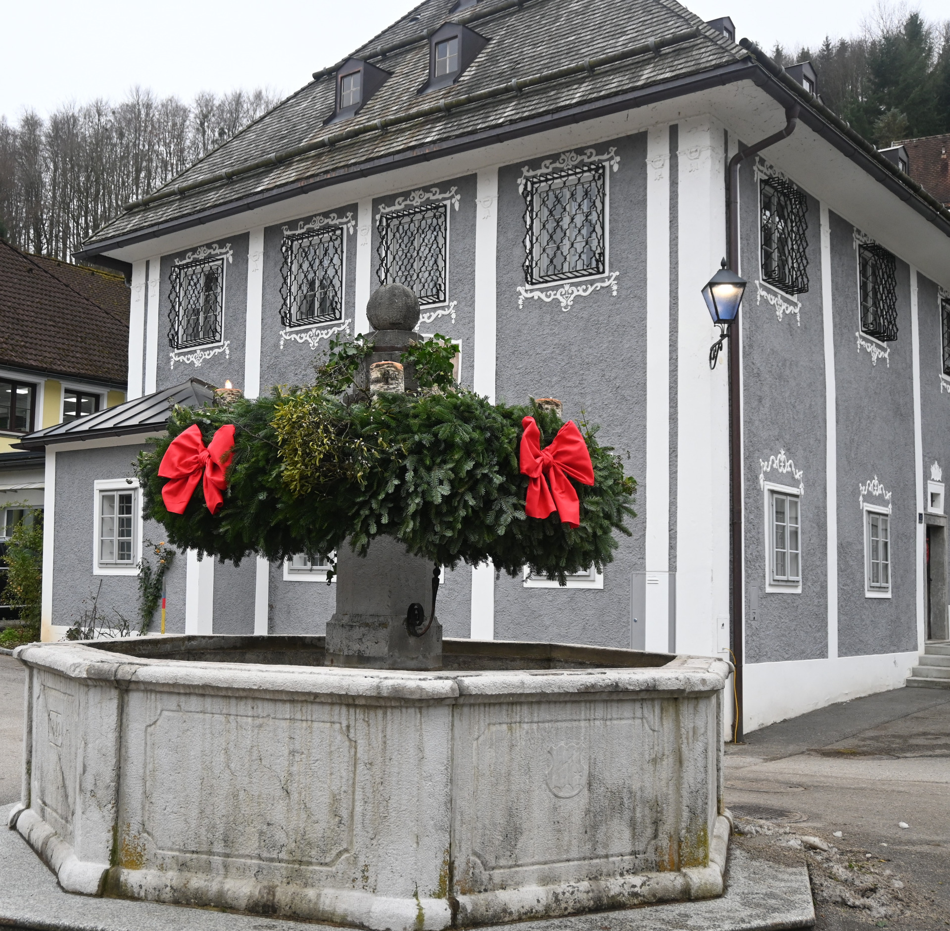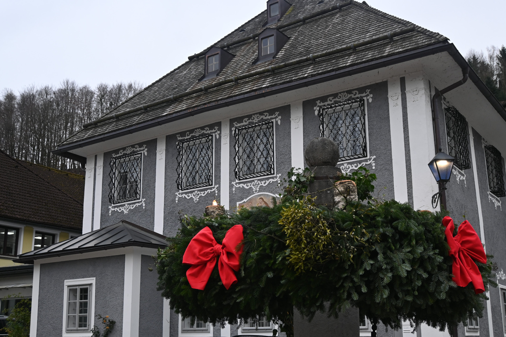 Beim Alten Marktbrunnen in der Hammerschmiedstraße erstrahlt in diesem Advent ein großer, liebevoll gebundener Adventkranz – ein echter Blickfang und Symbol für Wärme, Gemeinschaft und Vorfreude.