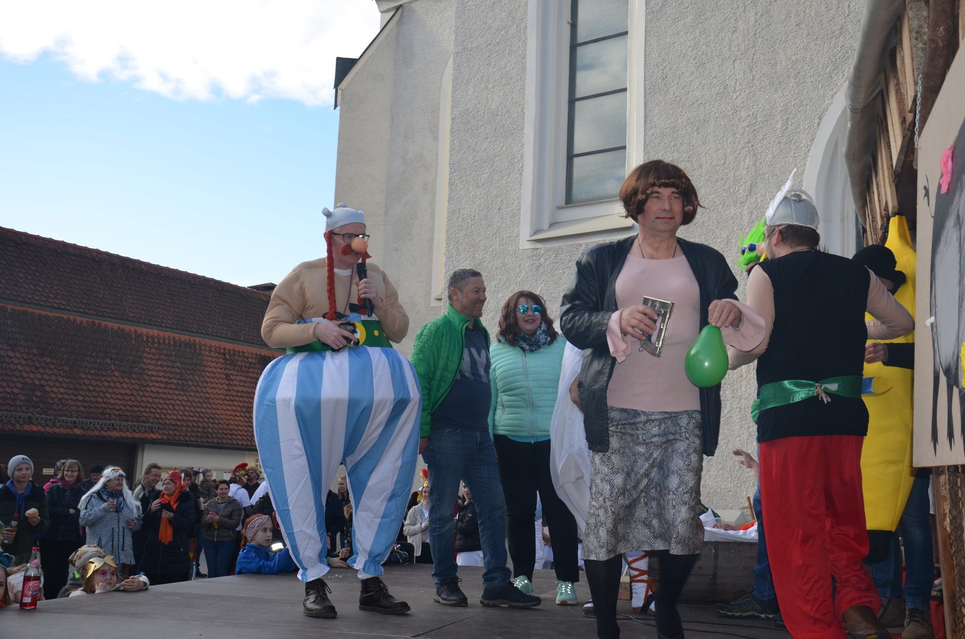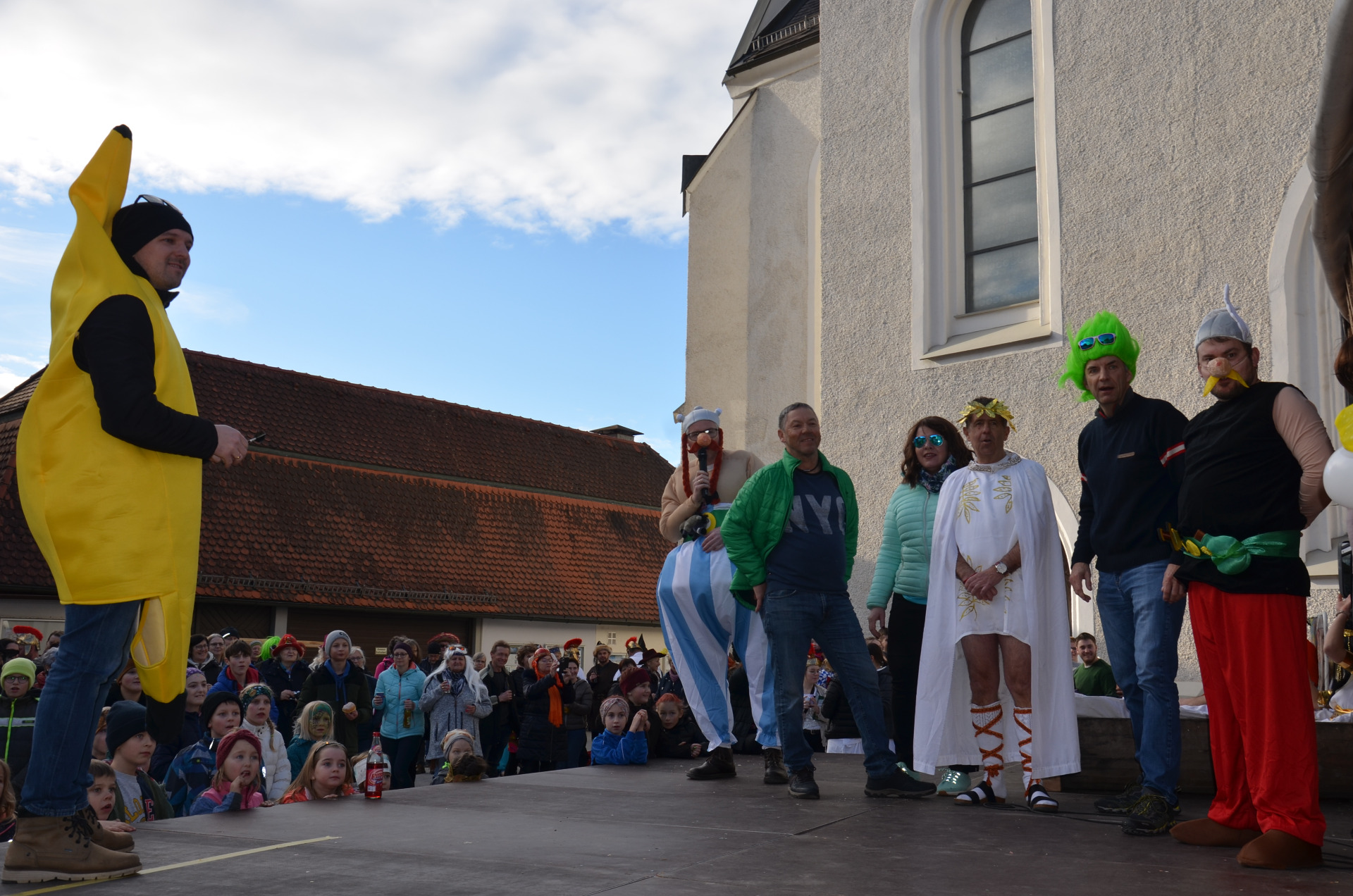 Bei herrlichem Wetter und vielen Besuchern wurde der Fasching gefeiert und die Gallier und Römer am Marktplatz empfangen.