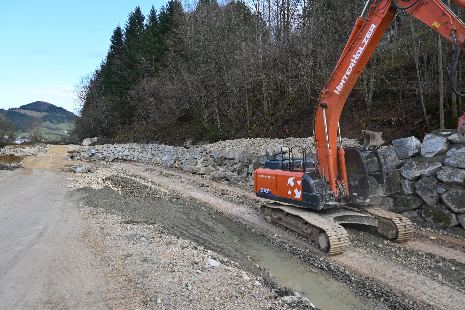 Am Donnerstag, 20. November 2025 besichtigten Bgm. Gerhard Lueger und gGR Herbert Fahrnberger den Baufortschritt beim Projekt „Rückbau Wehranlage Ginzler“ – Bereich SASO in der Grestner Straße.