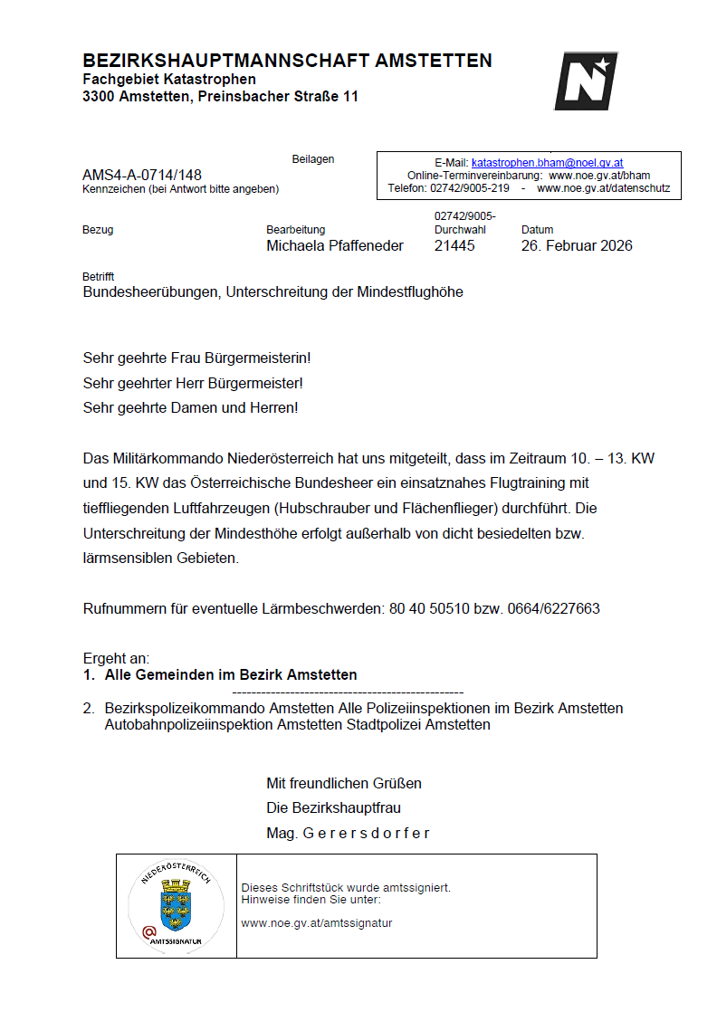 Das Militärkommando Niederösterreich informiert: