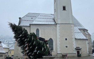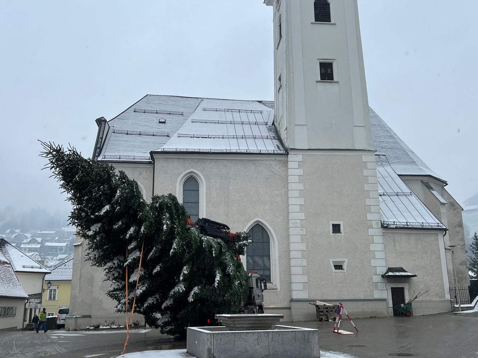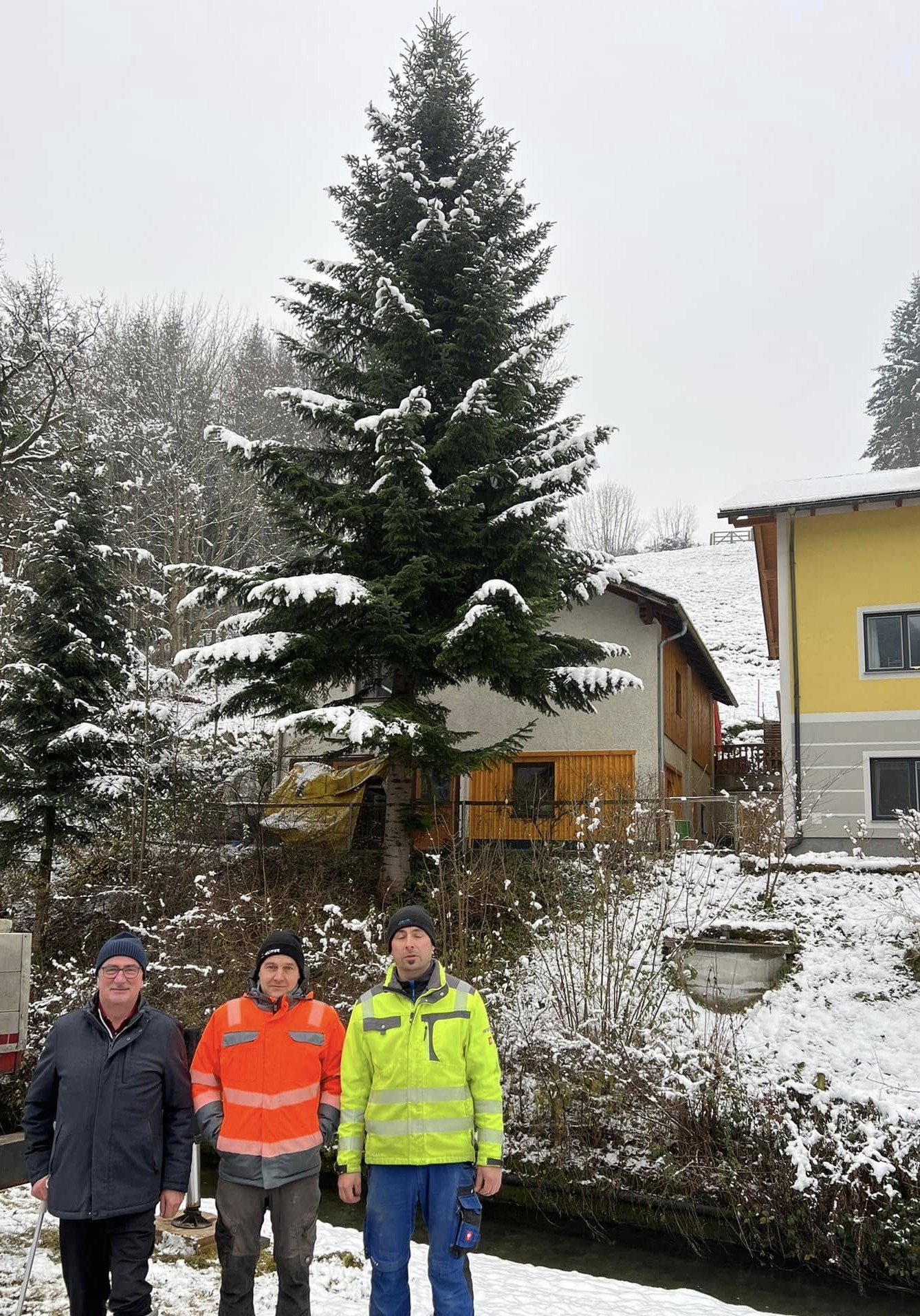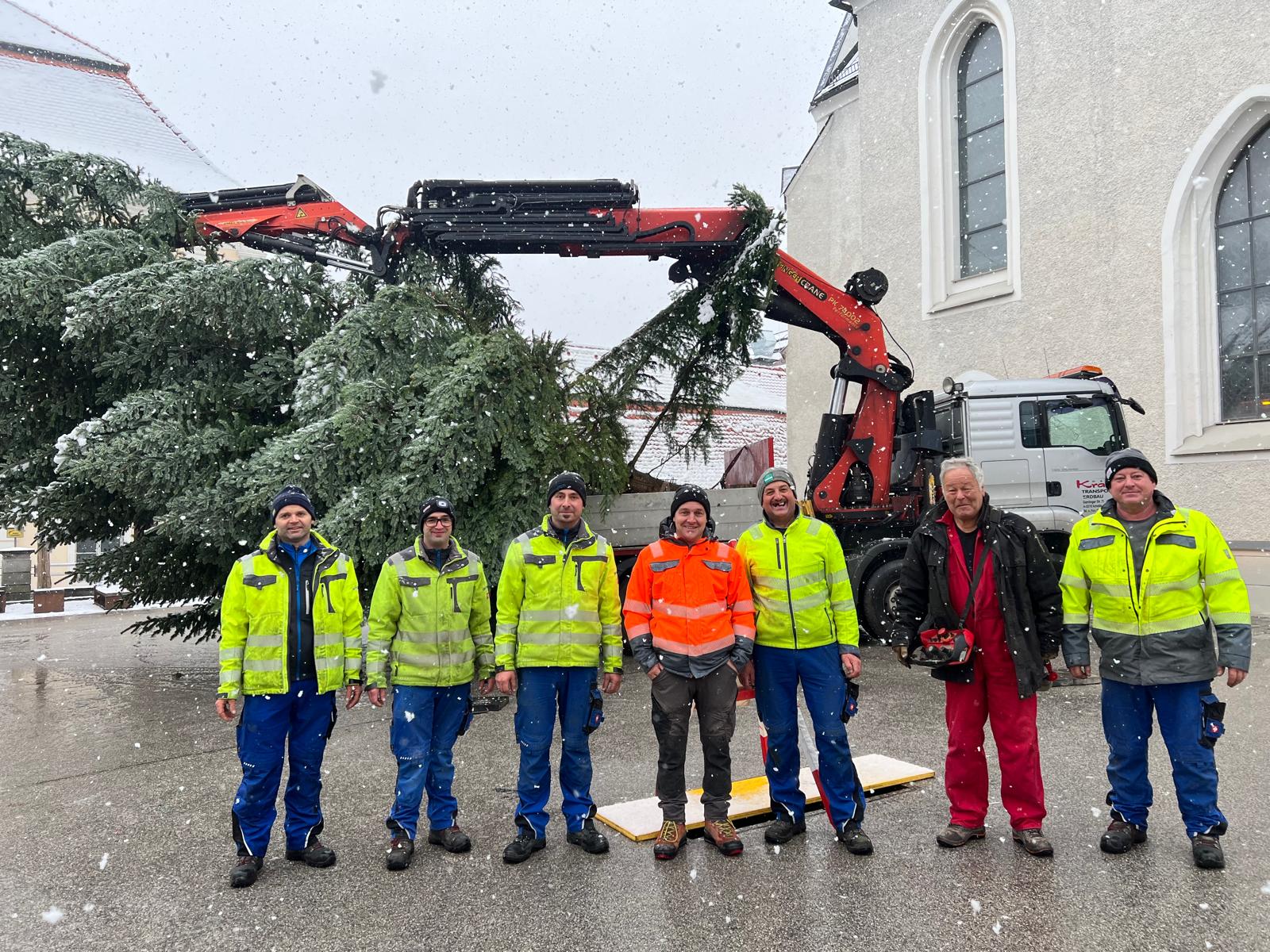 Diese wurde bereits am Dienstag, 25. November 2025 vom Bauhofteam gefällt und Mithilfe des Kranwagens der Fa. Hans Kraml aufgestellt.