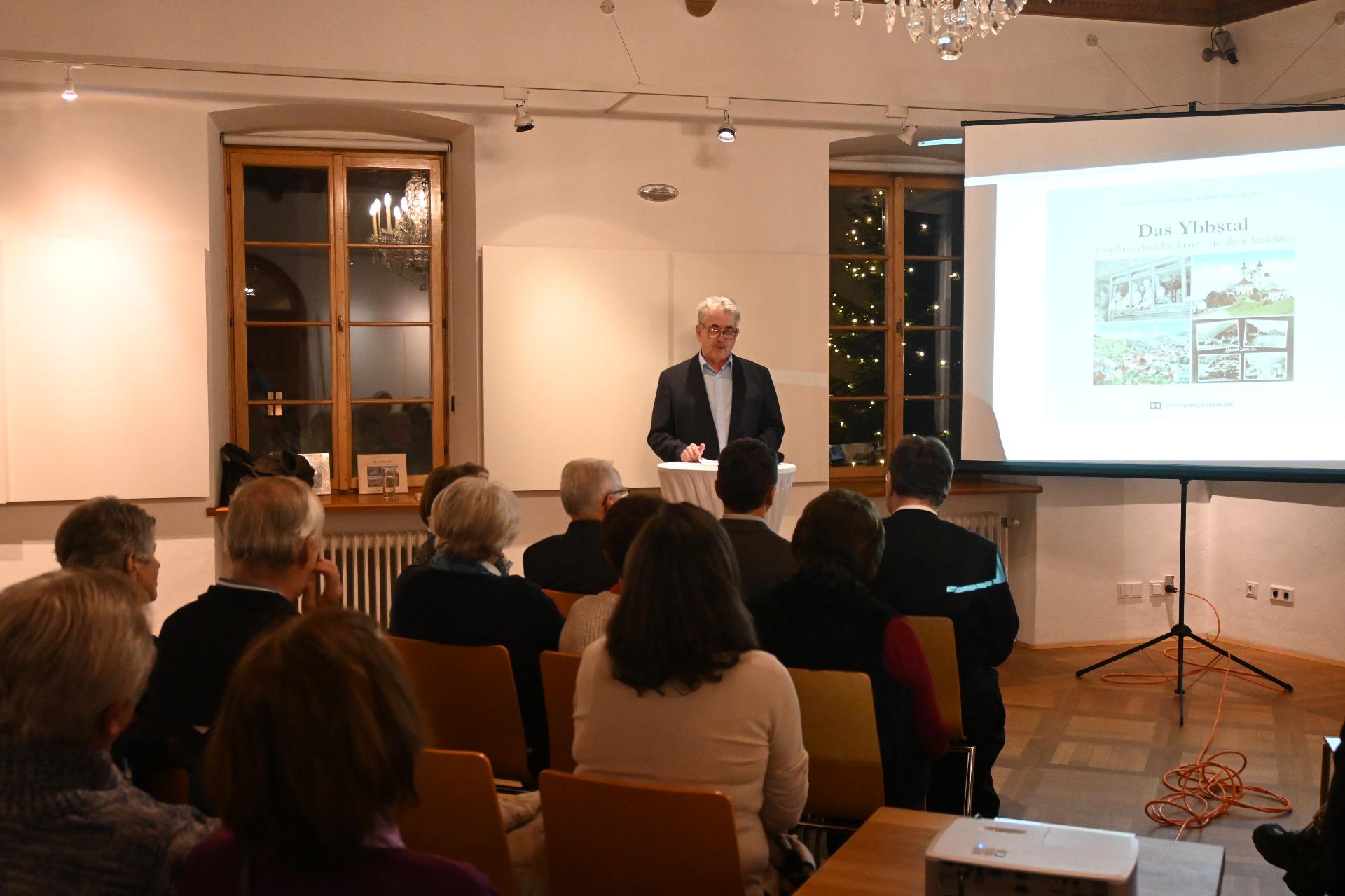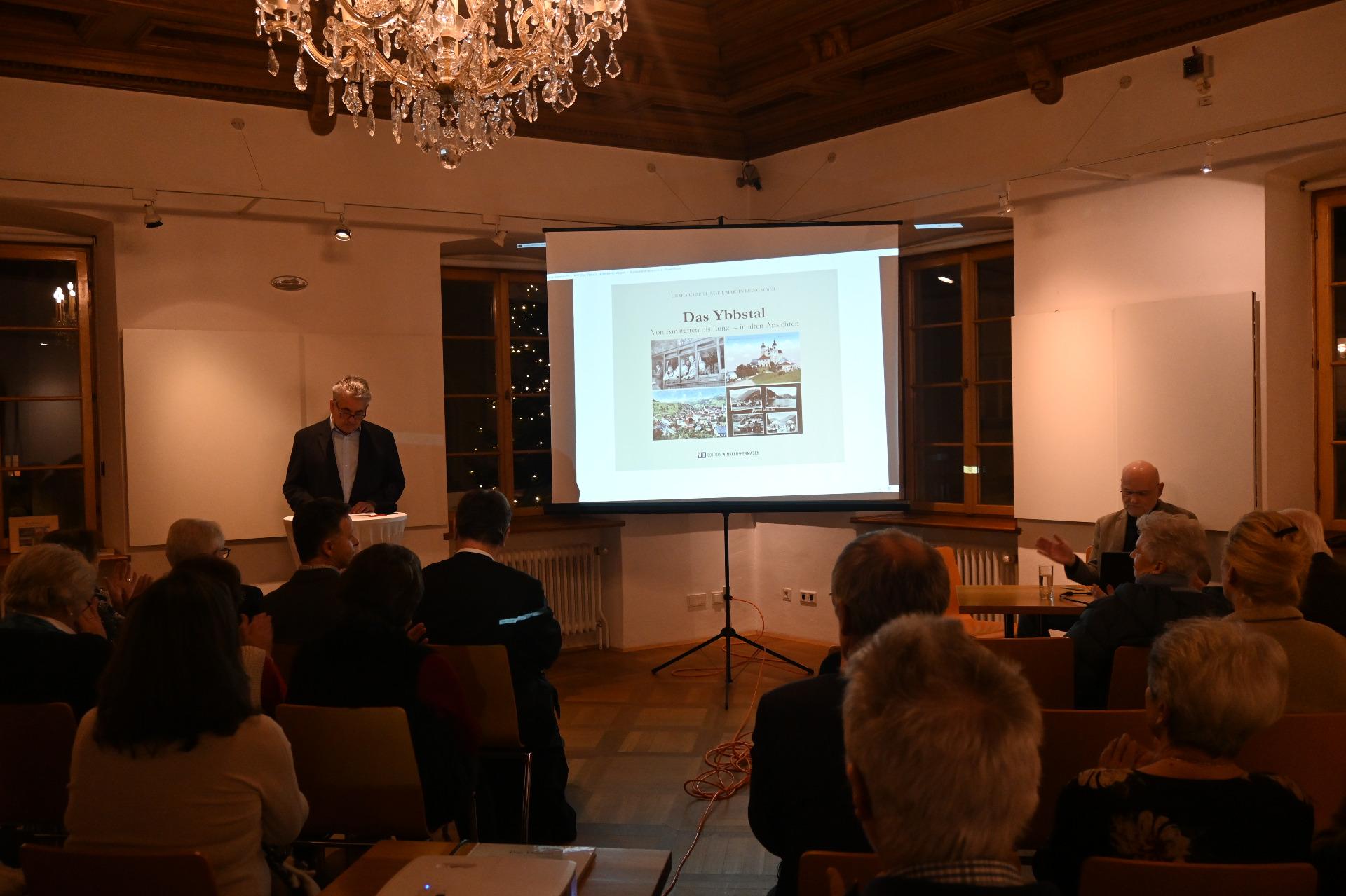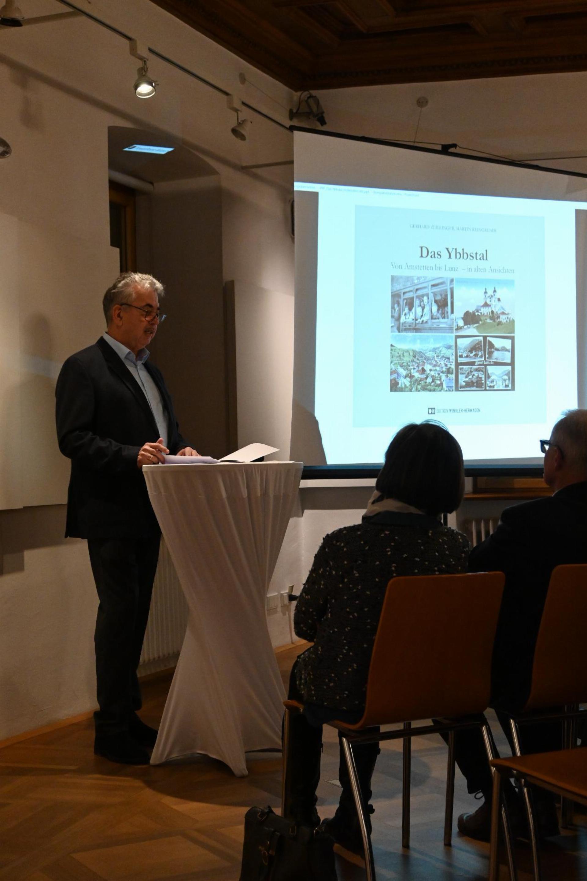 Die Begrüßung und Vorstellung des Buches übernahm Martin Reingruber, bevor er das Wort an den Historiker und Literaturwissenschafter Gerhard Zeilinger übergab. Er präsentierte den Teil von Amstetten bis Waidhofen und Martin Reingruber stellte die Abschnitte von Ybbsitz bis Lunz am See vor.