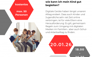 Am Infoabend erfahren Sie: Wie Eltern am besten digitale Themen ansprechen, wie Kinder ihre Privatsphärre schützen können, wieviel Bildschirmzeit okay ist oder wie man einen guten Mix aus Online- und Offline-Aktivitäten schafft, sind einige mögliche Themen des Workshops. Ideal für alle Eltern und erwachsene Bezugspersonen.