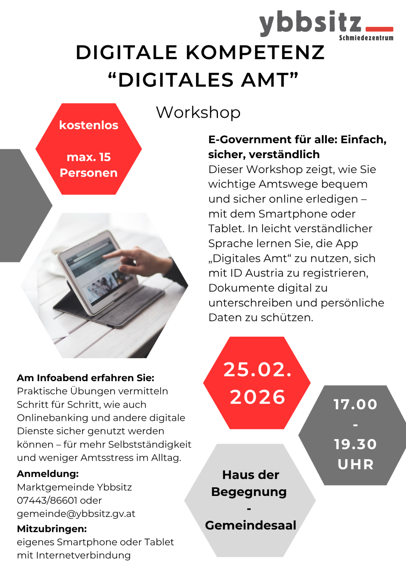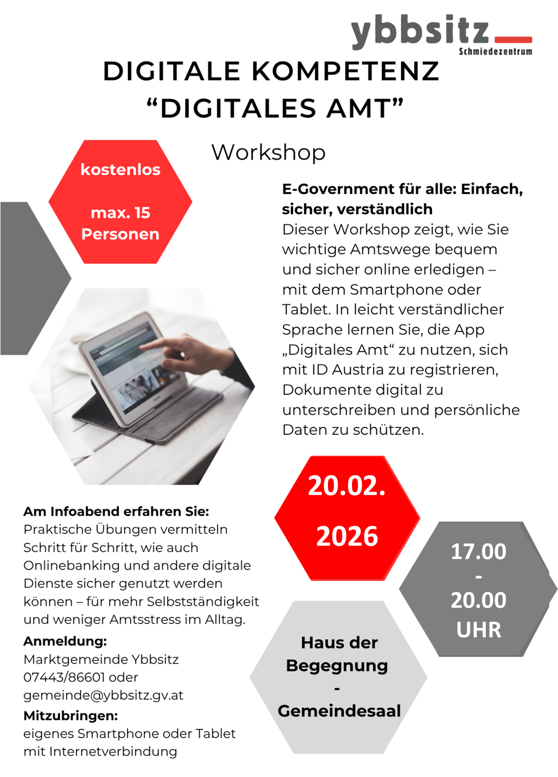 Anmeldung: Marktgemeinde Ybbsitz, Tel. 07443 / 86601 oder gemeinde@ybbsitz.gv.at