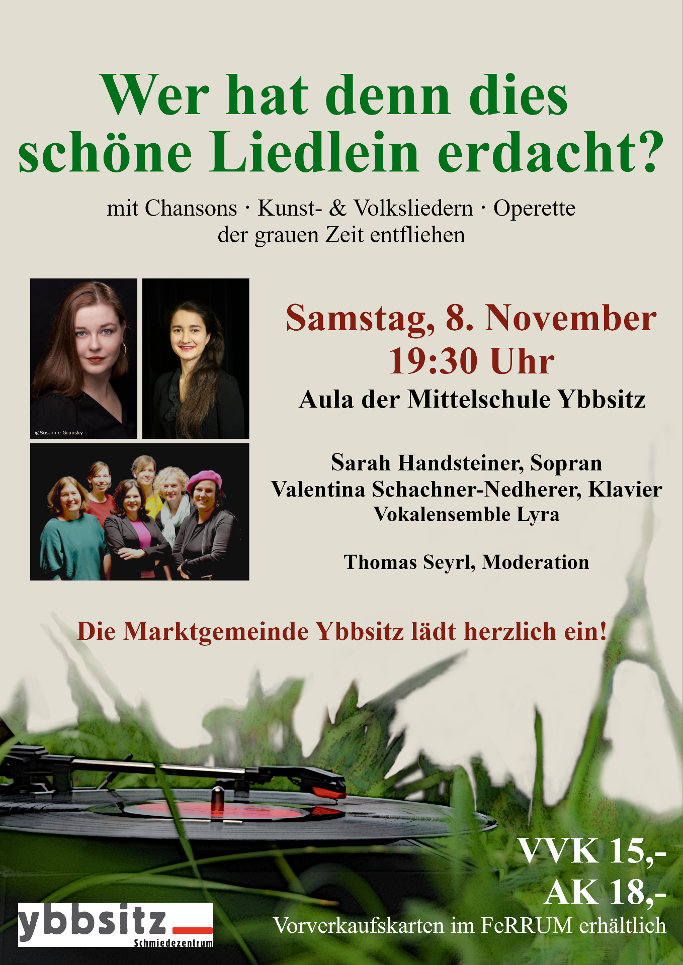 Das Kulturreferat der Marktgemeinde Ybbsitz lädt herzlich zu einem besonderen Liederabend ein: