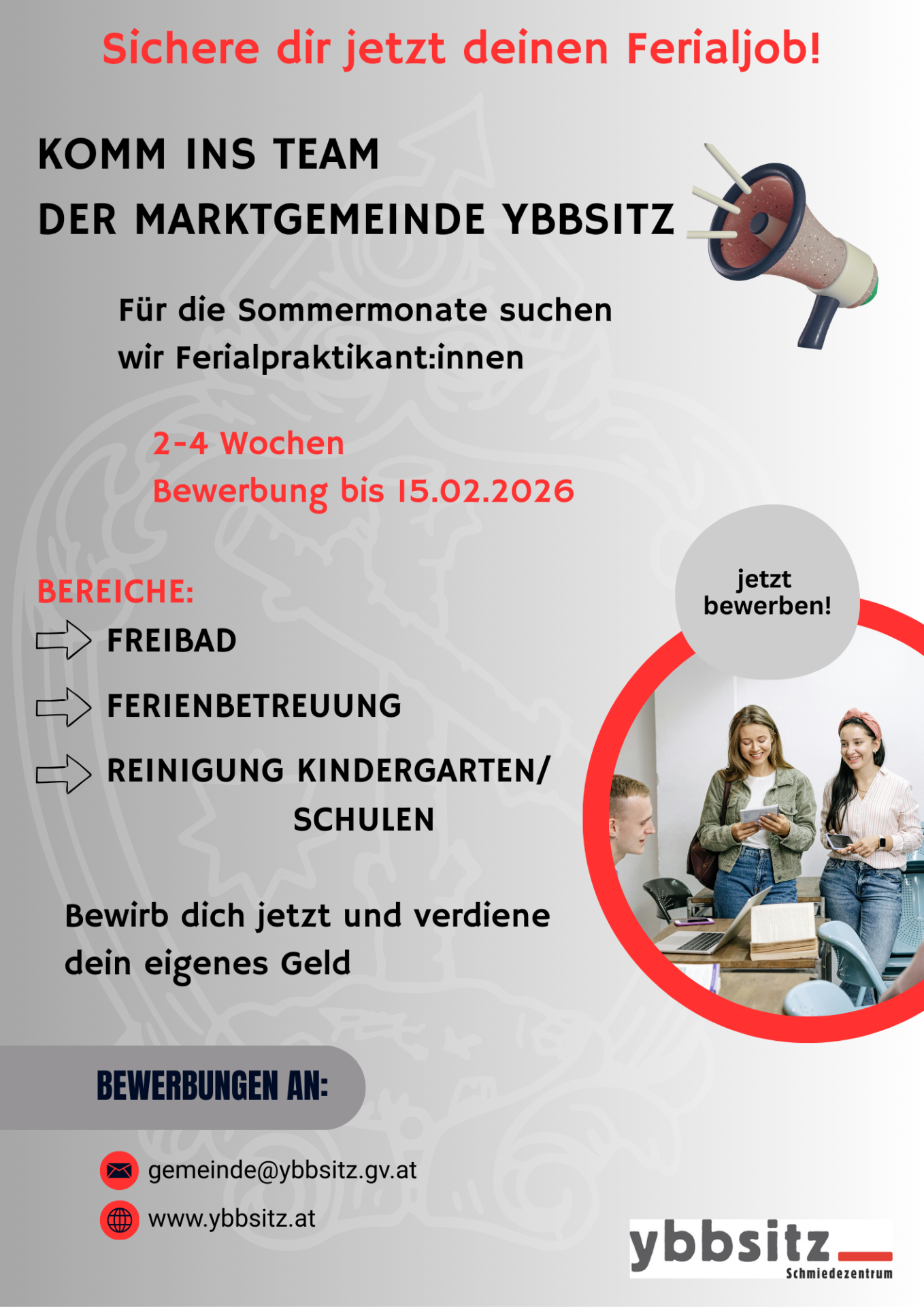 Die Marktgemeinde Ybbsitz bietet auch diesen Sommer Jugendlichen die Möglichkeit einer Beschäftigung in den Ferien nachzugehen.
