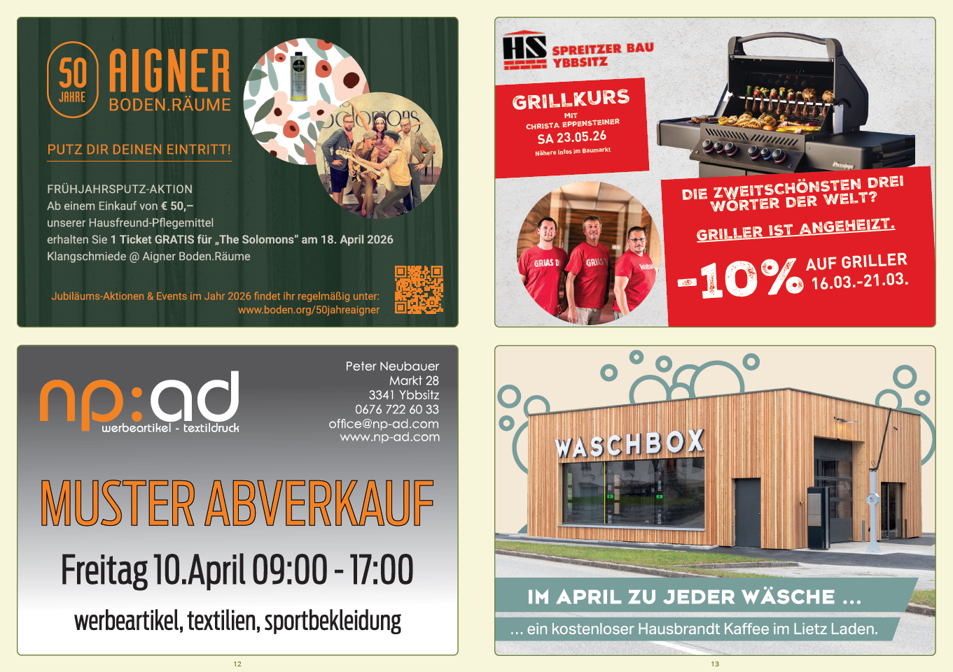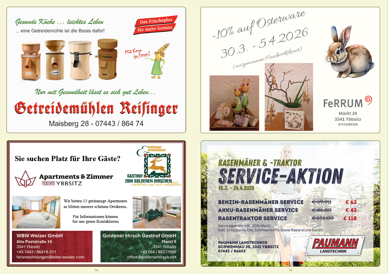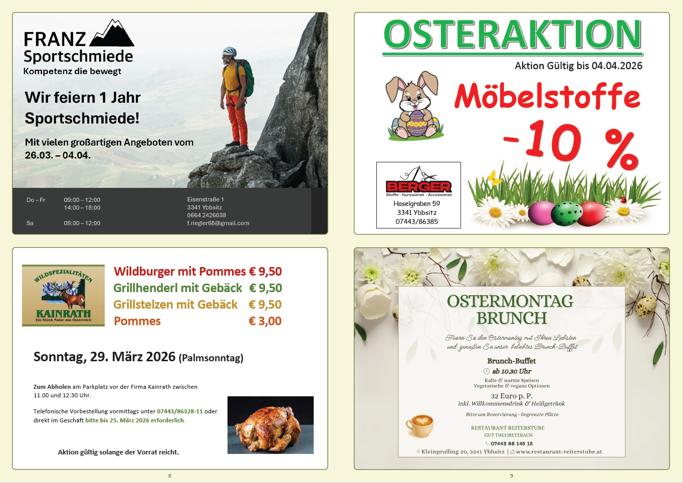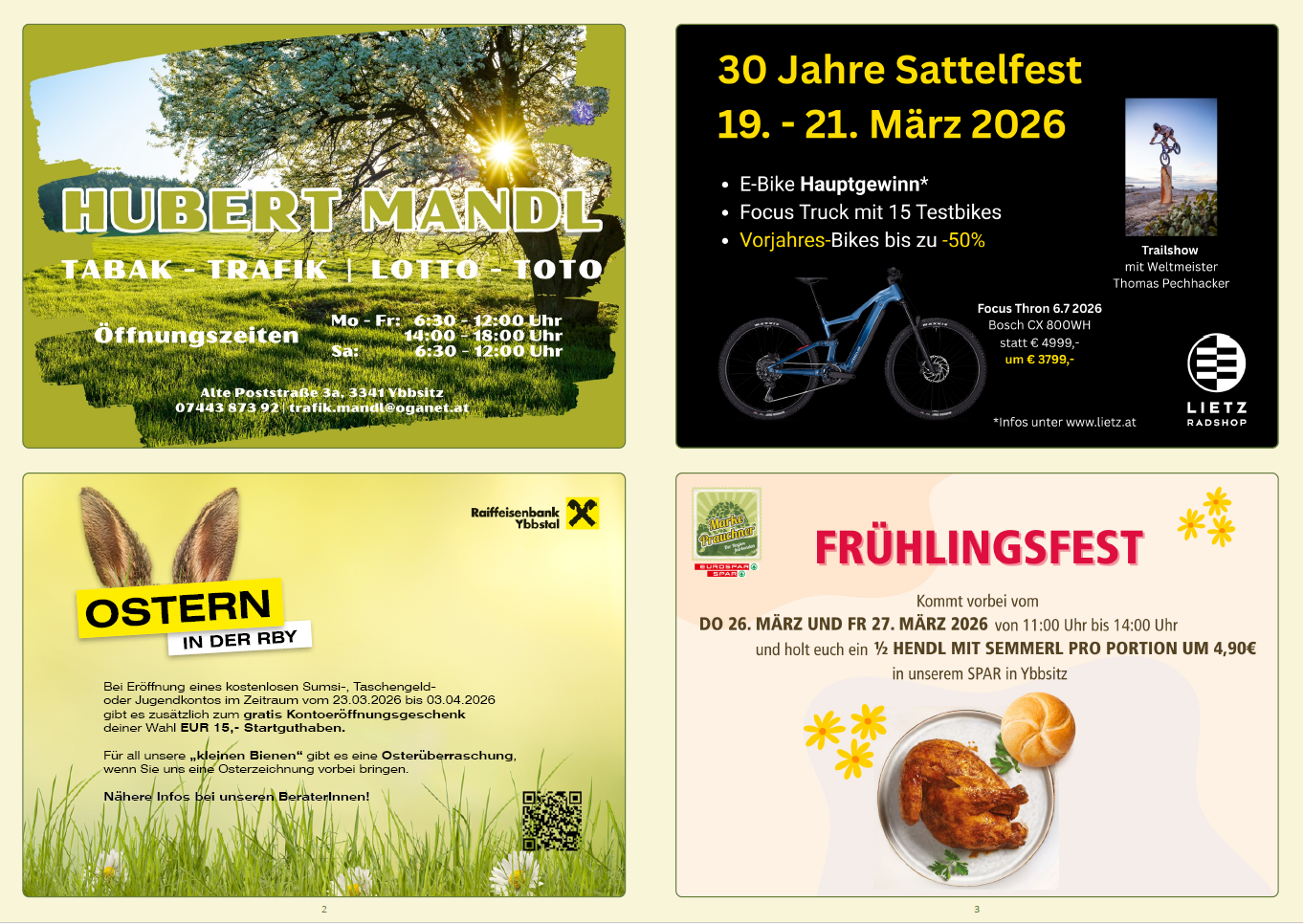 Ein bunter Postwurf flatterte zu Frühlingsbeginn in alle Ybbsitzer Haushalte und lädt ein die Angebote unserer örtlichen Betriebe zu nutzen.