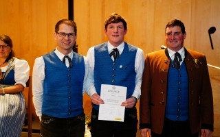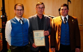 Leistungsabzeichen in Silber: Kapellmeister Christoph Fuchsluger, Georg Tazreiter, Obmann Lukas Heigl