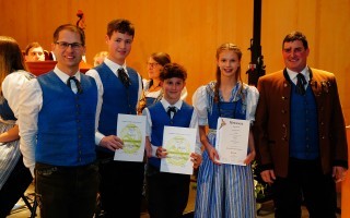 Im Rahmen des Konzertes wurden auch Ehrungen an Jungmusiker für absolvierte Leistungsabzeichen in Bronze, Silber und Gold vorgenommen.