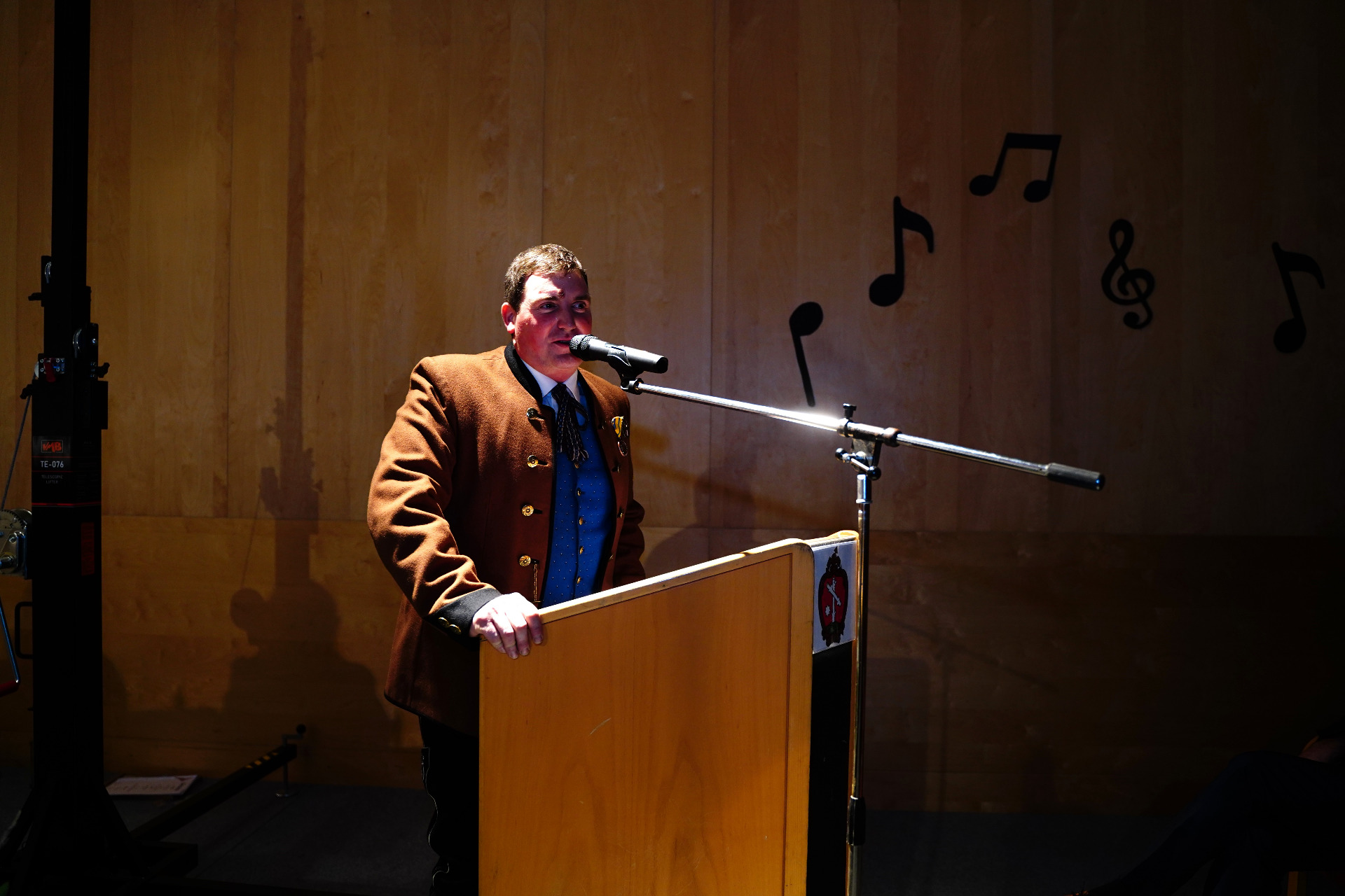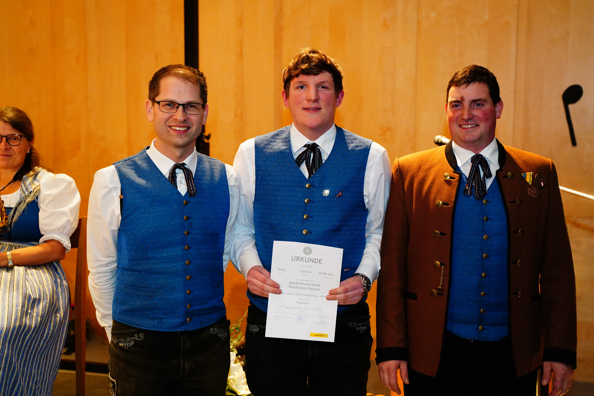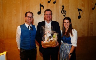 Präsentübergabe: Kapellmeister Christoph Fuchsluger, Moderator Leo Lugmayr, Marketenderin Sabine Füsselberger