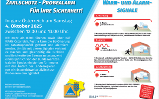 Am Samstag, 4. Oktober 2025 findet in ganz Österreich zwischen 12.00 und 13.00 Uhr ein Zivilschutz-Probealarm statt!