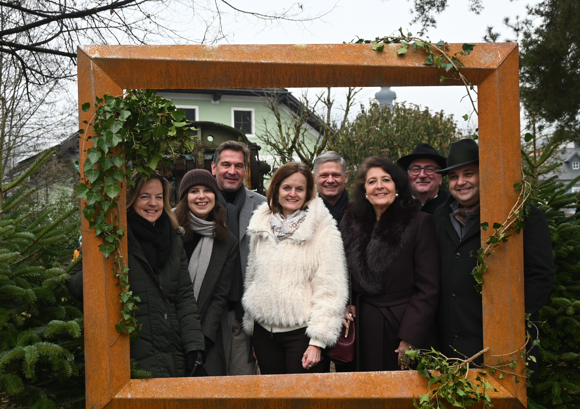 Vizebgm. Georg Stockner, Bgm. Mag. Werner Krammer (Obmann Eisenstraße NÖ), NR Mag. Andreas Hanger, Bezirkshauptfrau Mag. Martina Gerersdorfer, Hon. Prof. Dr. Irene Welser, Bgm. Gerhard Lueger, LAbg. Mario Wührer, Bgm. a.D. Josef Hofmarcher
