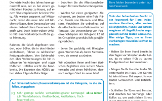 Die Verwendung von Feuerwerkskörpern/Silvesterknallern der Kategorie F2 (z.B. Schweizer Kracher, Knallfrösche etc.) ist im Ortsgebiet grundsätzlich ganzjährig verboten.
