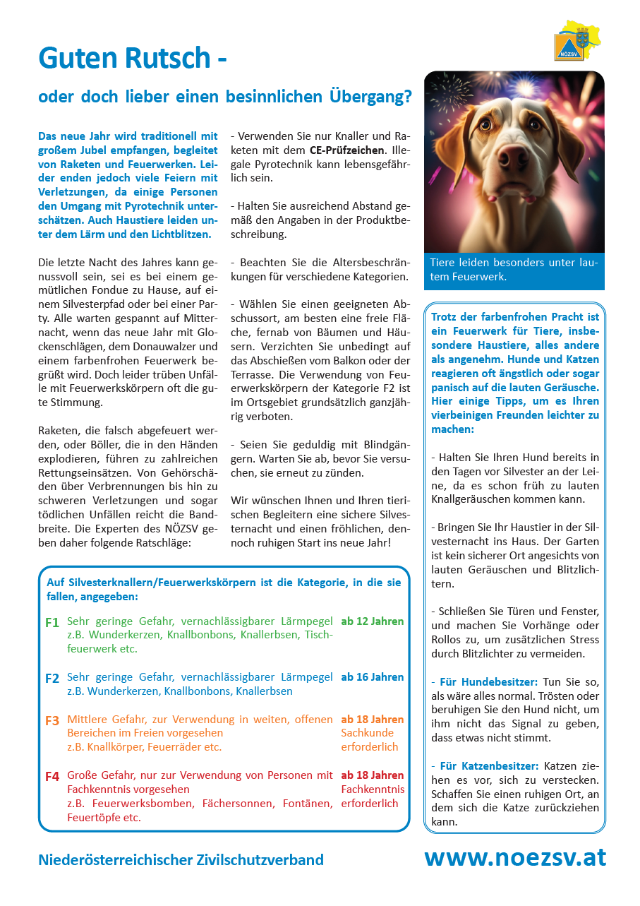 Anbei finden Sie Tipps für Hundebesitzer des NÖ Zivilschutzes