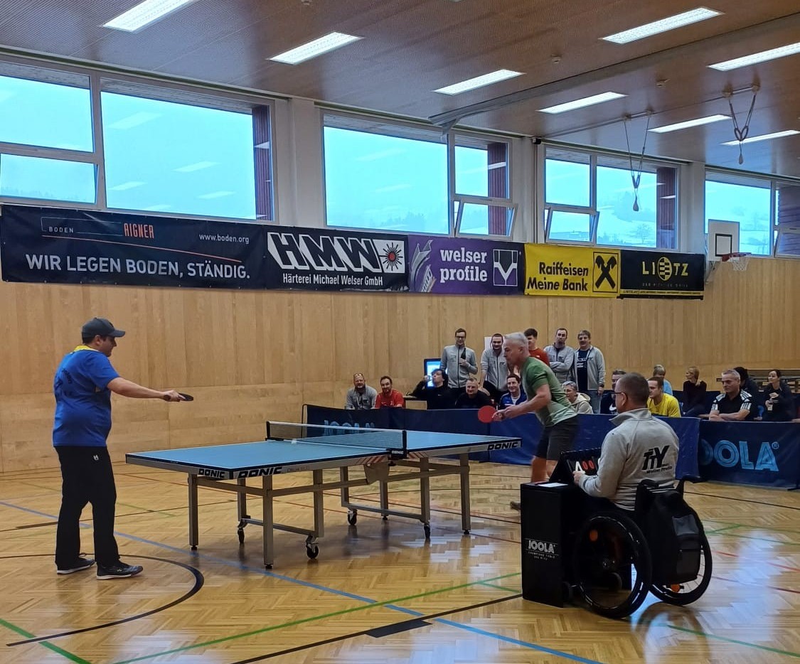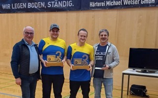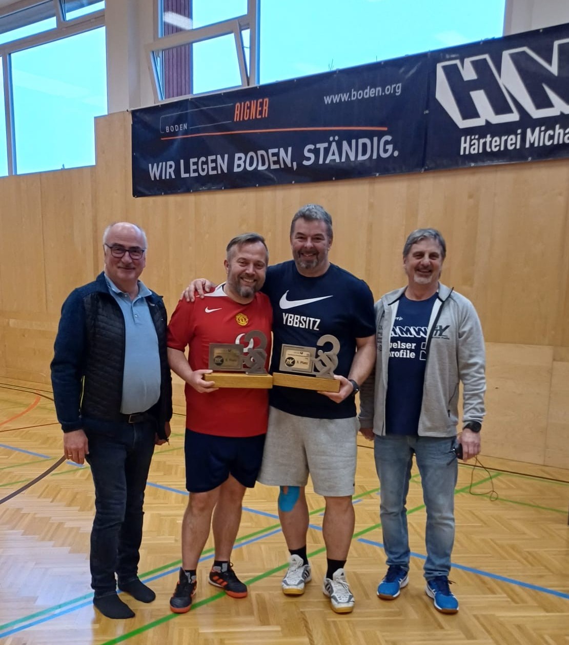 Das Veranstalterteam und Leiter der Sektion Tischtennis Alois Mayr durften dazu 16 Spielerteams mit jeweils 2 Spielern begrüßen. Die unterschiedlichen Teams (nur Hobbyspieler) lieferten hochkarätige Spiele und spannende Begegnungen bis zum Finale. Dazwischen wurde die interessierten Zuschauer und die Teilnehmer bestens im Buffet versorgt.