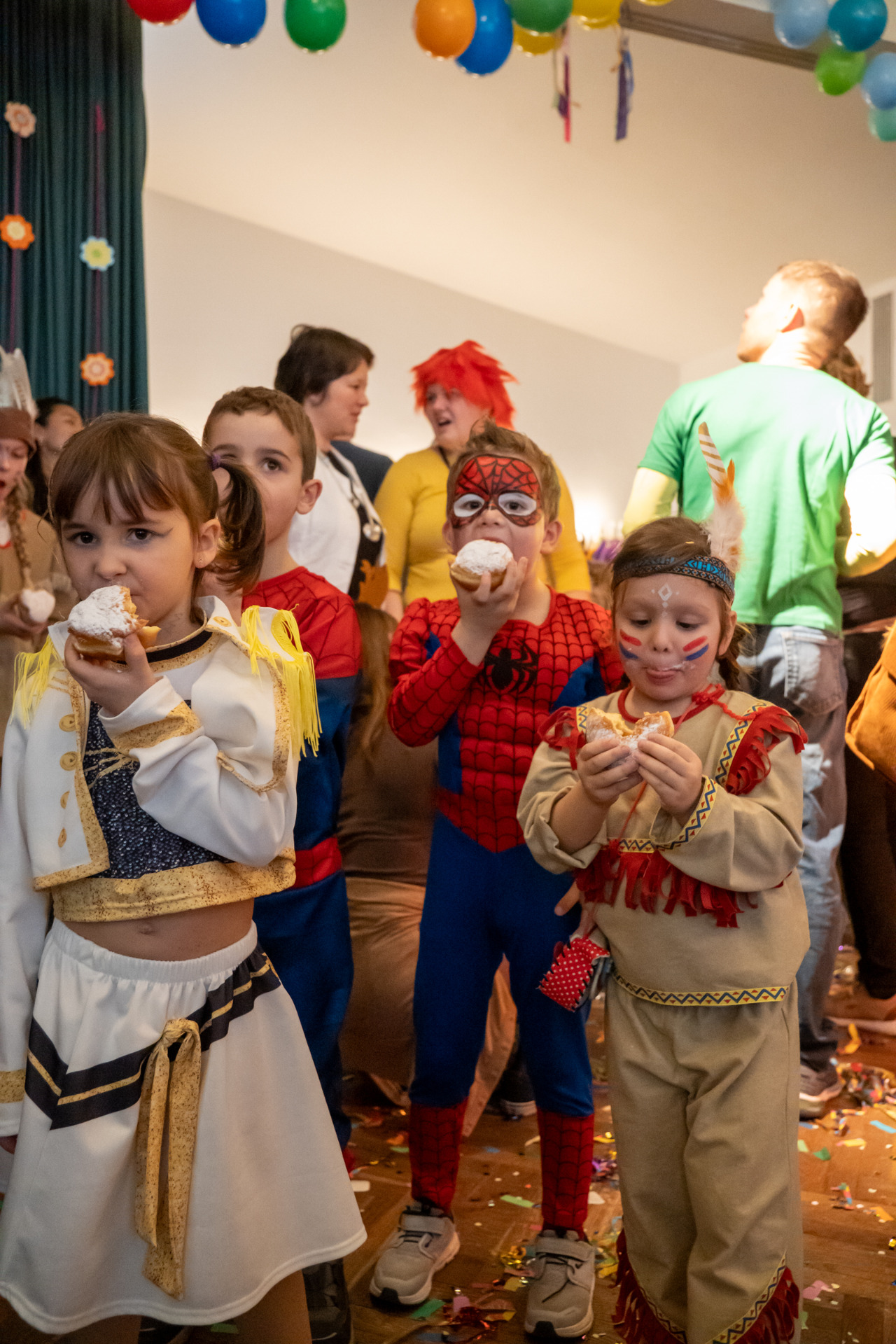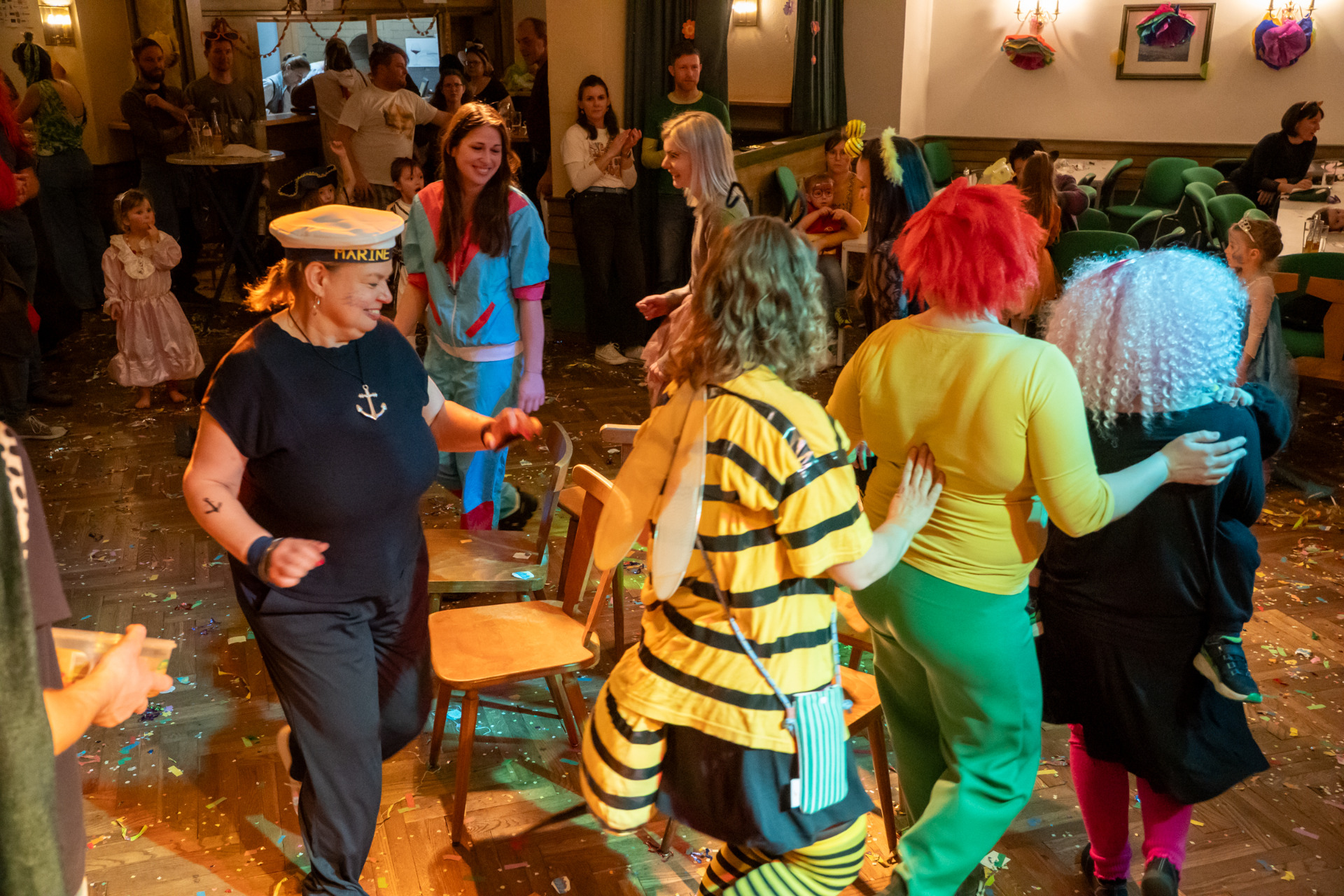 Eltern und Kinder genossen mit ihren Verkleidungen das Faschingstreiben im bunt geschmückten Saal vom GH Zum Goldenen Hirschen.