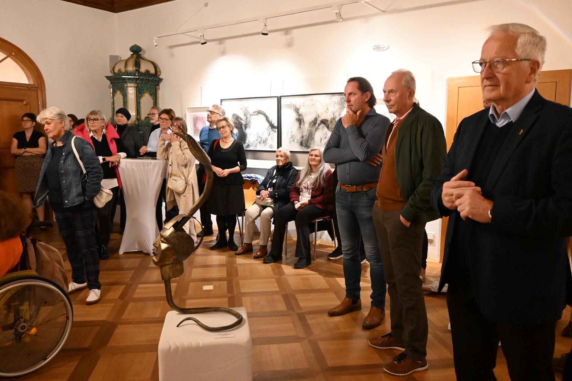 Am Donnerstag, 9. Oktober 2025 fand die Vernissage in feierlichem Rahmen dazu statt. Ein Flötenduo der Musikschule unter der Leitung von Kerstin Picker umrahmte diesen besonderen Anlass.