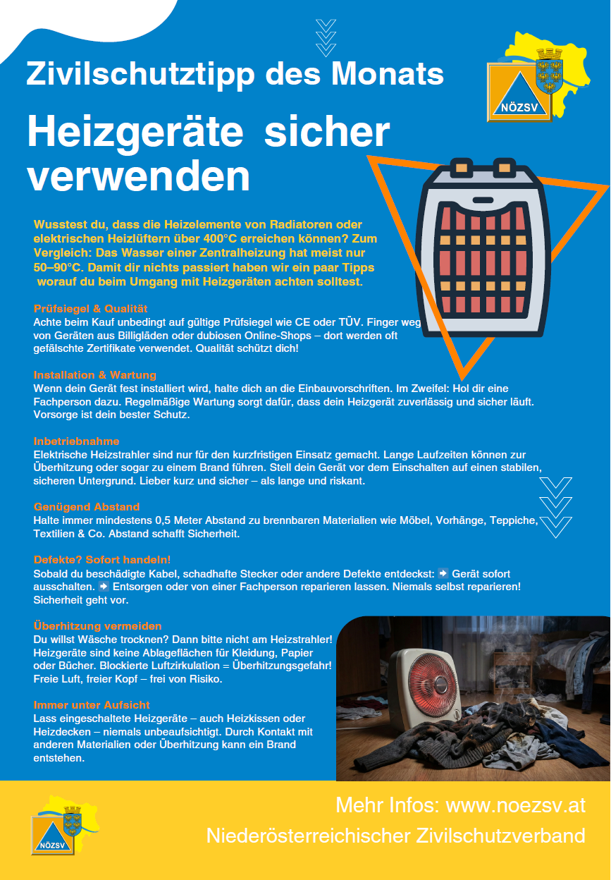 Wußten Sie, dass die Heizelemente von Radiatoren oder zum elektrischen Heizlüftern über 400° C erreichen können? Zum Vergleich: Das Wasser einer Zentralheizung hat meist nur 50-90° C. Damit Ihnen nichts passiert haben wir ein paar Tipps auf die Sie beim Umgang mit Heizgerläten achten sollten.